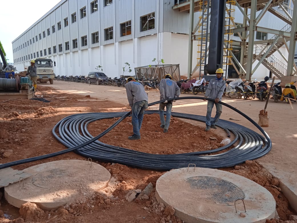Instalasi kabel tegangan rendah (LV) dan menengah (MV), tray kabel, ducting, serta grounding system.